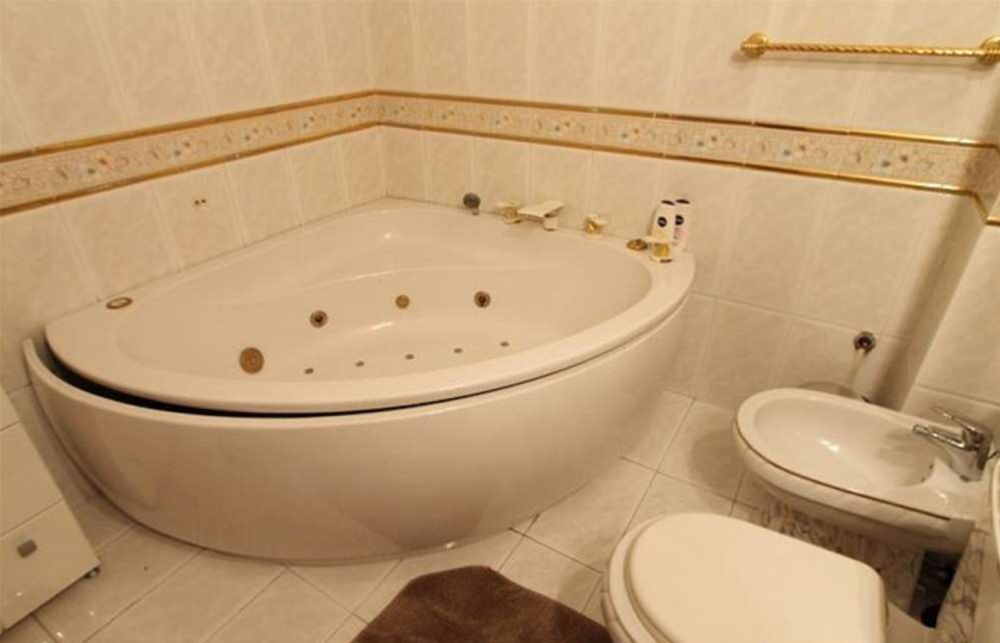 Međutim, po slikama se ne bi reklo da mu nešto fali. Ima kuhinju sa svim neophodnim elementima, veliko kupatilo sa đakuzijem, veliki televizor, francuski krevet.