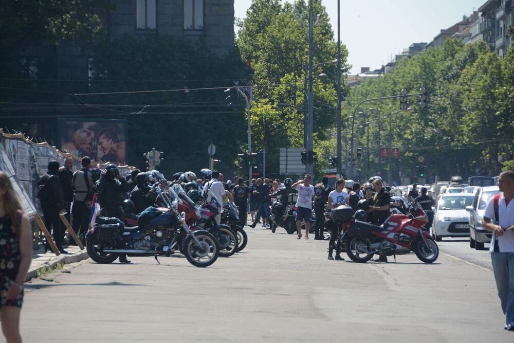 10:15: Grupa bajkera okupila se oko parka i paradirala ulicama, pre dolaska propadnika LBGT populacije.