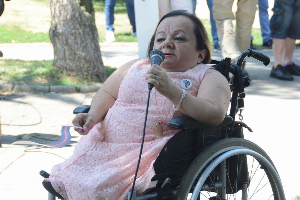 12:00 - Prajd je otvorila Helena, i najavila ovogodišnju kumu parade, Snežu, osobu sa invaliditetom koja je bila žrtva nailja!