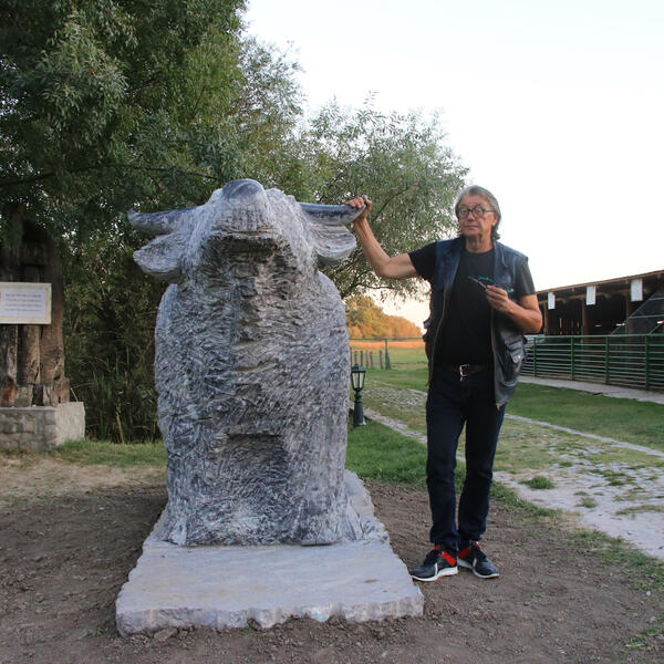 Izraditi ovog impozantnog kamenog bika nije bilo ni najmanje lako, a delo je poznatog vajara profesora Velimira Karavelića koji iza sebe ima puno značajnih dela.
