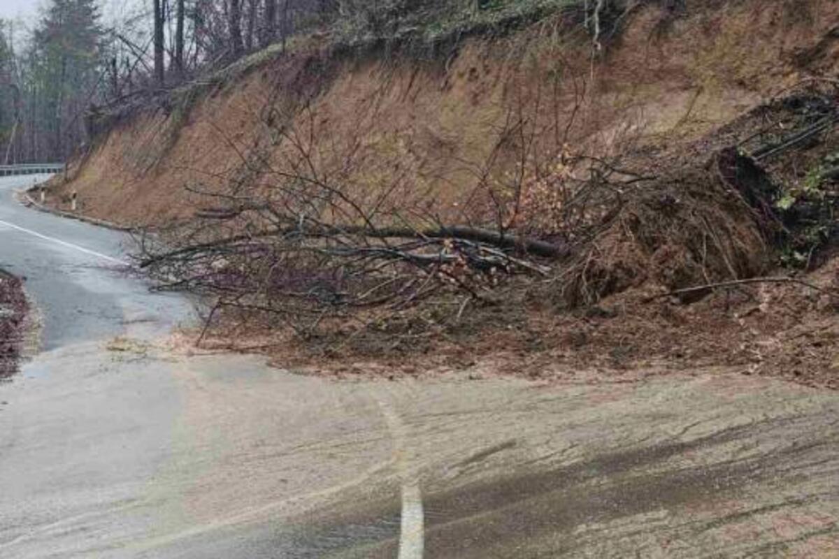Kiša je izazvala razmekšavanje tla, što je dovelo do klizišta i nanošenja materijala na put, otežavajući saobraćaj.