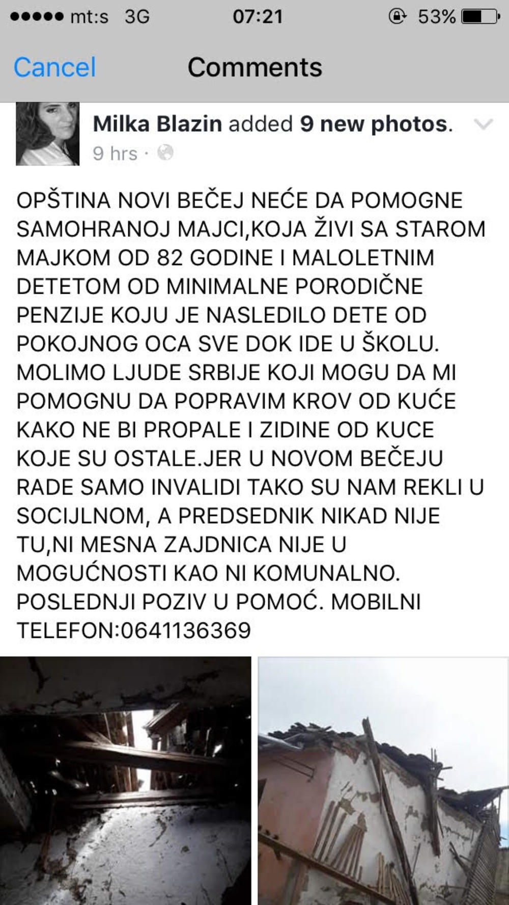 Kako ni jedna nadležna institucija ne želi da se zabavi ovim slučajem, Milka je bila prinuđena da pomoć potraži alternativnim putem, odnosno putem društvenih mreža.