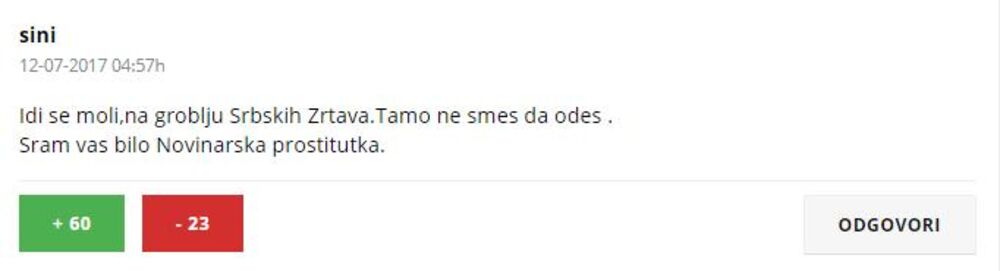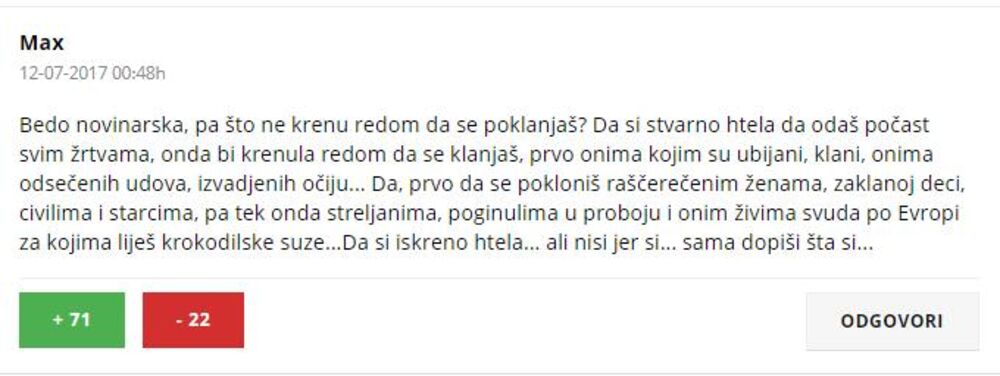 Umri prostitutko, treba ti j..... mater! KLEČALA SAM U SREBRENICI I KRAVICI ZA DUŠE DVA NARODA, a Balkan ujedinila samo u jednom - u psovkama!