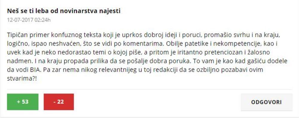 Takvih komentara na račun dva teksta bilo je pregršt, a ovo su samo neki od njih.