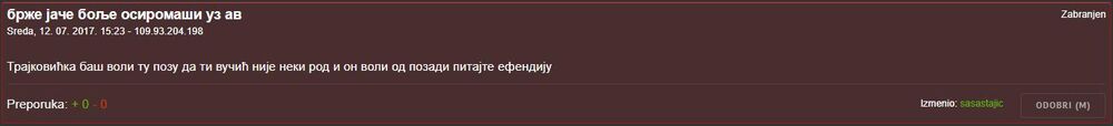 P.S. Selekciju među komentarima koji neće biti, ili će biti objavljeni vrši uredništvo portala Espreso.co.rs. Ispod tekstova se ne objavljuju komentari koji su rasistički, koji u sebi imaju psovke ili govor mržnje.