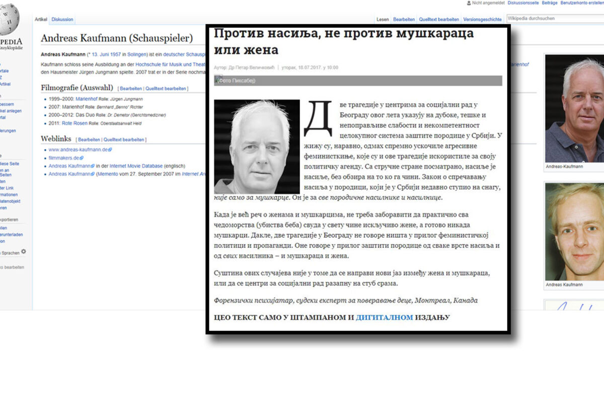 KAKAV BLAM POLITIKE! Prvo su objavili sramnu kolumnu dr Milivojevića, a kad su ih svi osudili zbog toga izmislili su psihijatra koji ga brani, a umesto njegove stavili fotku nemačkog glumca!