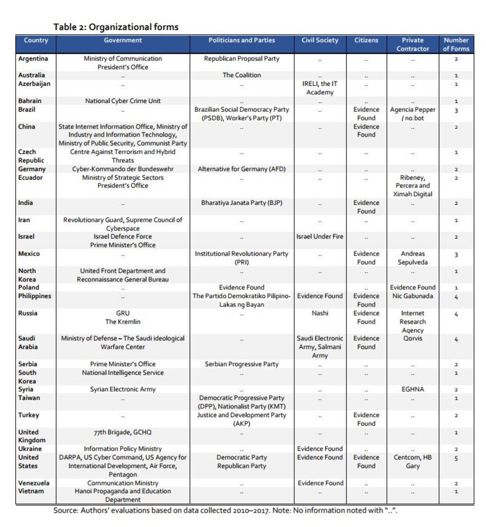 Na primer, u Meksiku, kada su blokirani spam botovi koje su sponzorisale vlade za korišćenje novinara i širenje dezinformacija na društvenim mrežama, svi su se vratili na svoje lične profile.