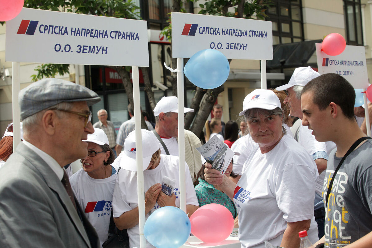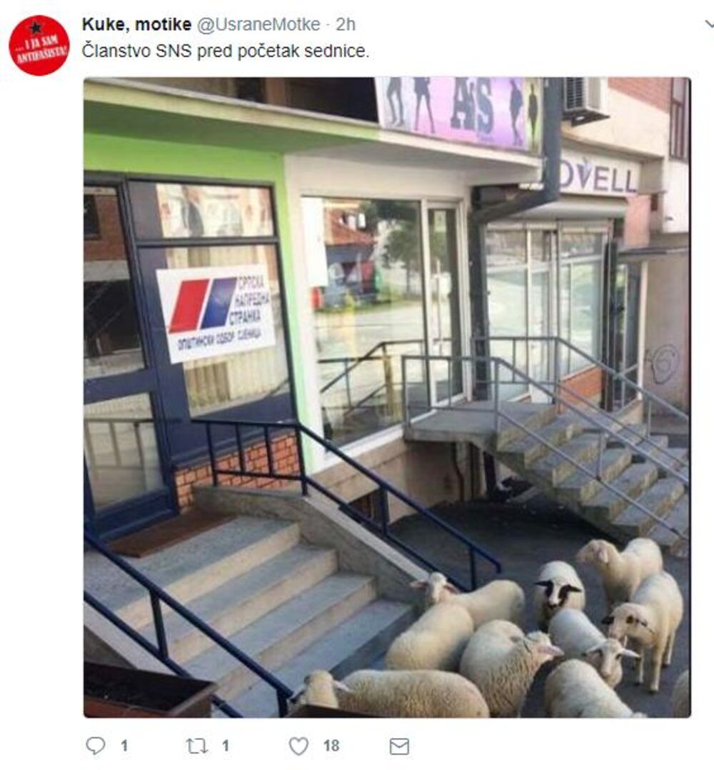 Tako je bilo i ovog puta, pa na fotografiji možemo videti brdo ovaca koje stoje ispred jednog od sedišta SNS-a.
