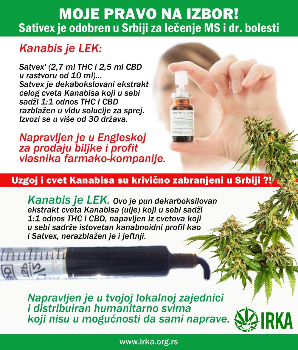 Ljudi iz udruženja "Irka" su mi najviše pomogli, oni su me usmerili kako da koristim ulje, pomogli da shvatim sa čime se borim. Evo već godinu i po sam sa njima i doprinosim koliko mogu, uglavnom u vidu izlaganja sopstvenog iskustva. Borimo se zajedno. Ima toliko svedočenja, ljudi svih starosnih dobi koji imaju pozitivna iskustva sa kanabisom. Oni sa MS-om kao i ja, epilepsijom, rakom, lupusom, astmom, depresijom, bivši heroinski zavisnici.