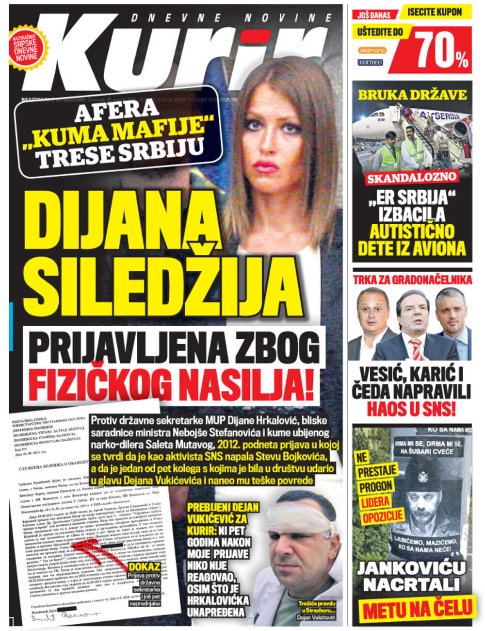 Kako je Hrkalovićeva umesto kazne dobila unapređenje, kako je došlo do toga da čovek zbog transparenta završi na tronedeljnom bolničkom lečenju, kao i sve detalje brutalnog prebijanja koje je kasnije proslavljano u partijskoj kafani ČITAJTE U KURIRU.
