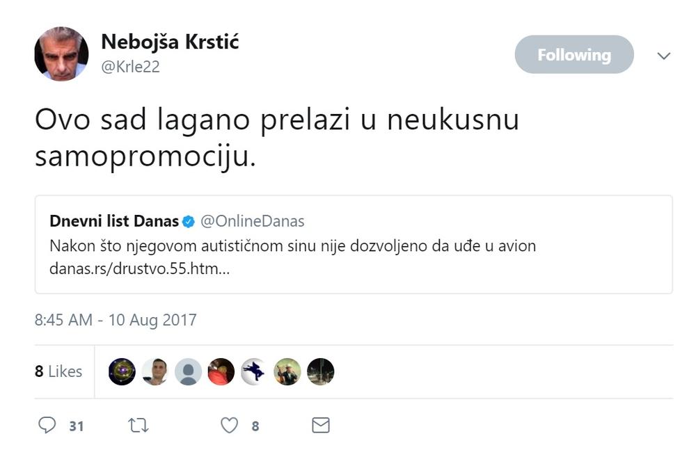 Ovim je Krstić izazvao bes javnosti u Srbiji, naročito na Tviteru.