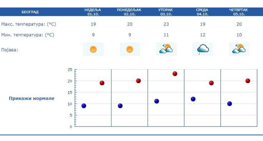 U sredu će oblačno s kišom i malo hladnije. Od četvrtka promenljivo oblačno, uglavnom suvo i malo toplije.