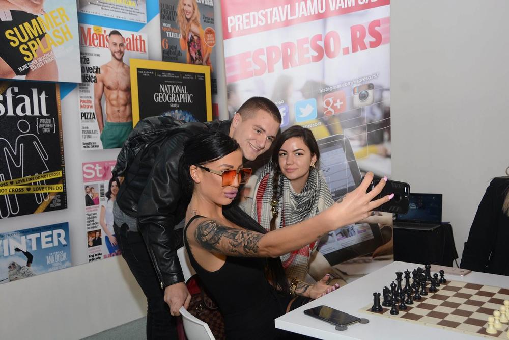 Naročitu pažnju posetilaca probudila je poseta poznate starlete Tijane Ajfon koja je igrala šah sa prolaznicima i fotografisala se pored dela štanda rezervisanog za naš portal espreso.co.rs.