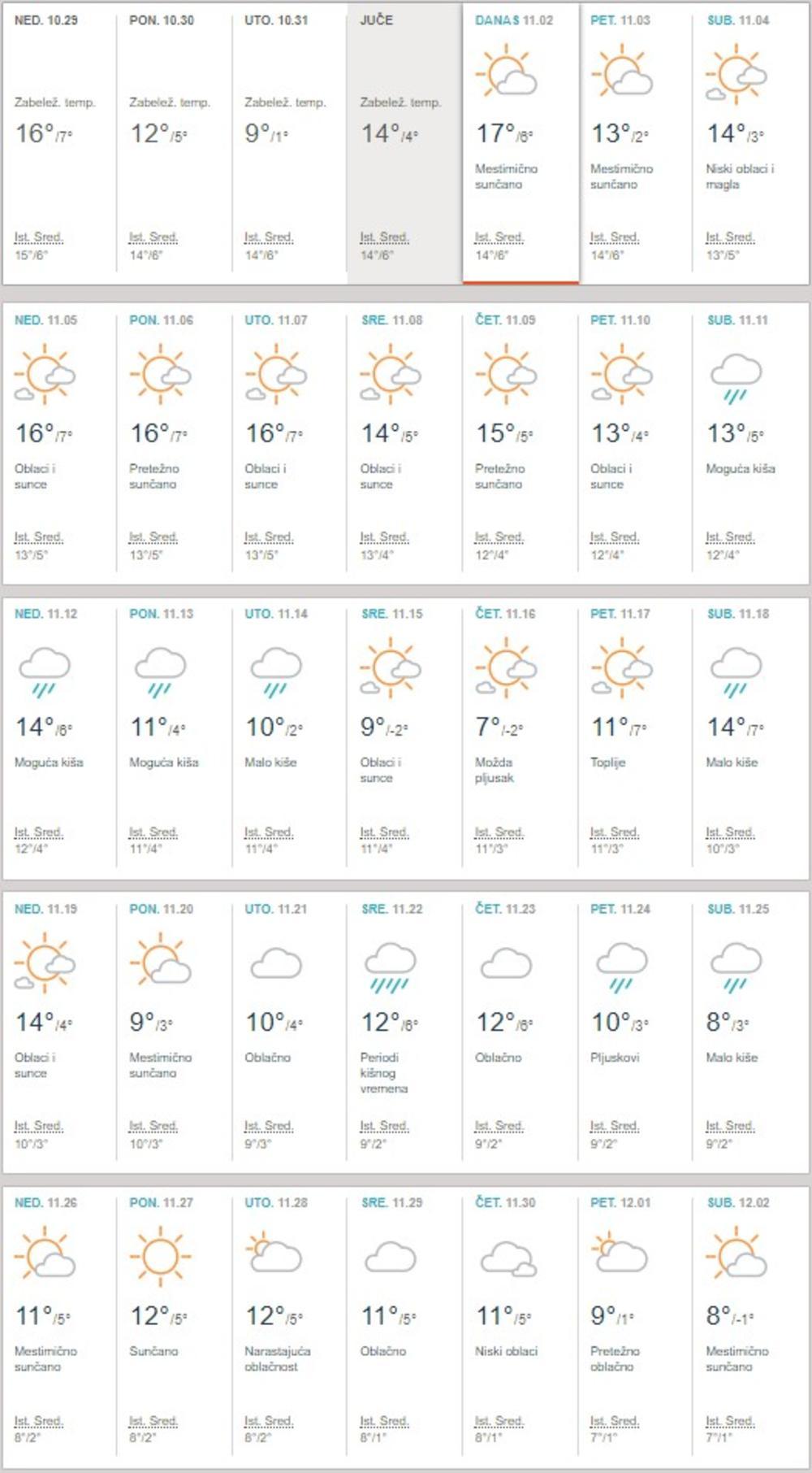 - Maksimalnim temperaturama kretaće se od 15 do 20 stepeni, i to onim danima kada bude bilo više sunca. Minimalne temperature biće čak u plusu, s obzirom da smo ovih dana imali jutarnje u minusu. Sledeće nedelje, u ponedeljak i sredu, očekuje nas prolazno naoblačenje, kada se opet očekuje razvedravanje - objašnjava Slobodan Sovilj, meteorolog Republičkog hidrometeorološkog zavoda.