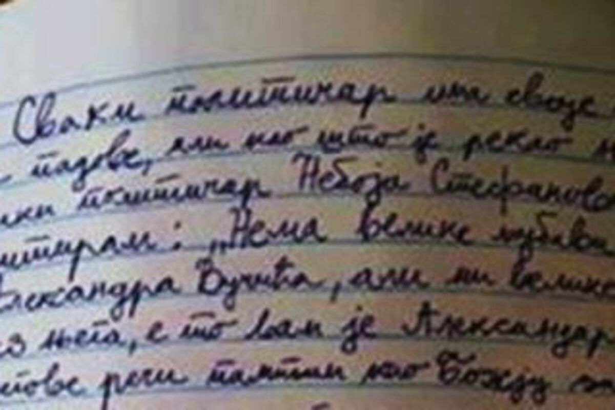 - Kao što je rekao naš veliki političar Nebojša Stefanović, citiram: "Nema velike ljubavi bez Aleksandra Vučića, ali ni velike patnje bez njega, e to vam je Aleksandar Vučić." Njegove reči pamtim kao Božju zapovest - napisao je učenik.