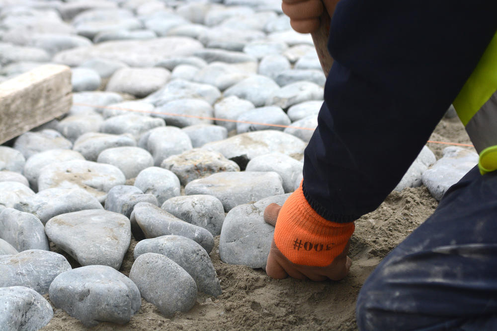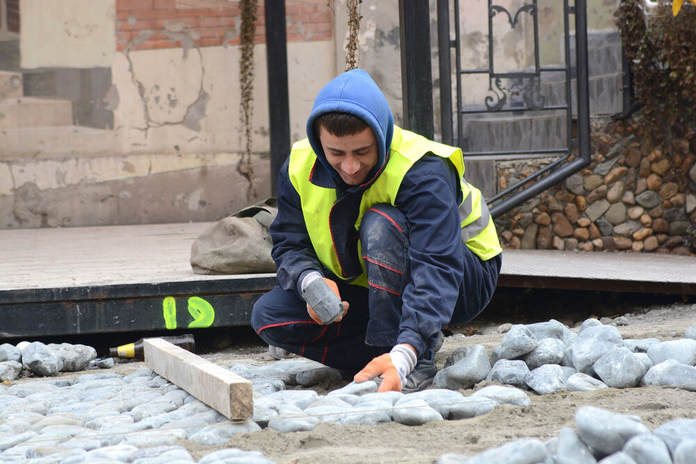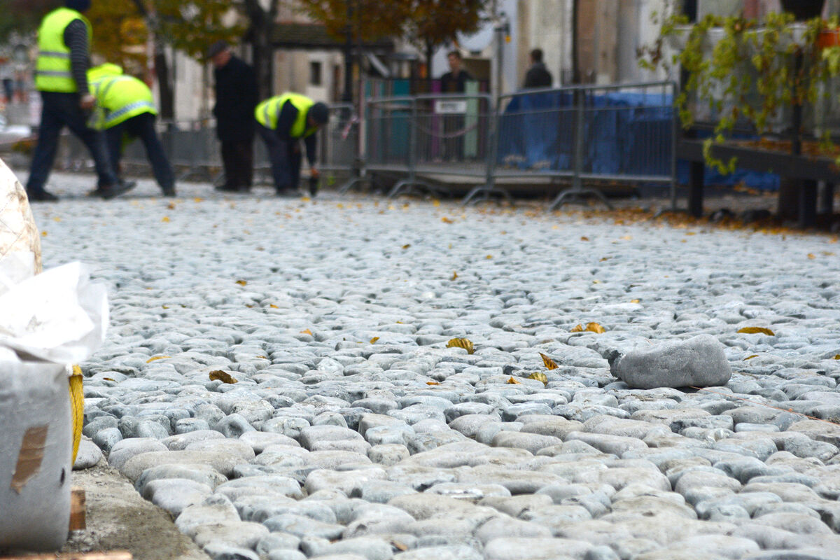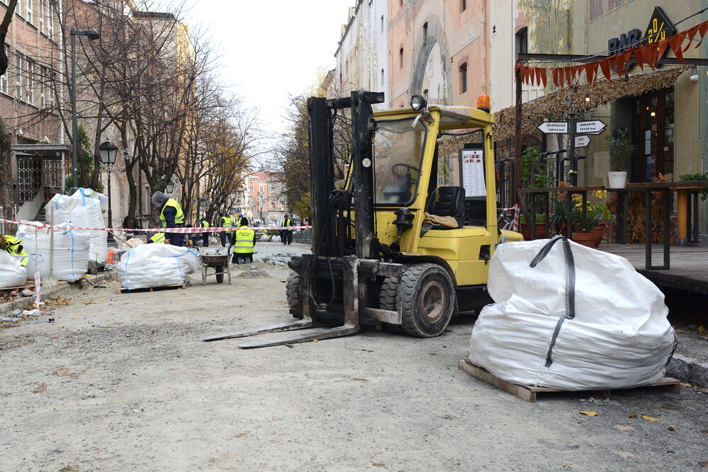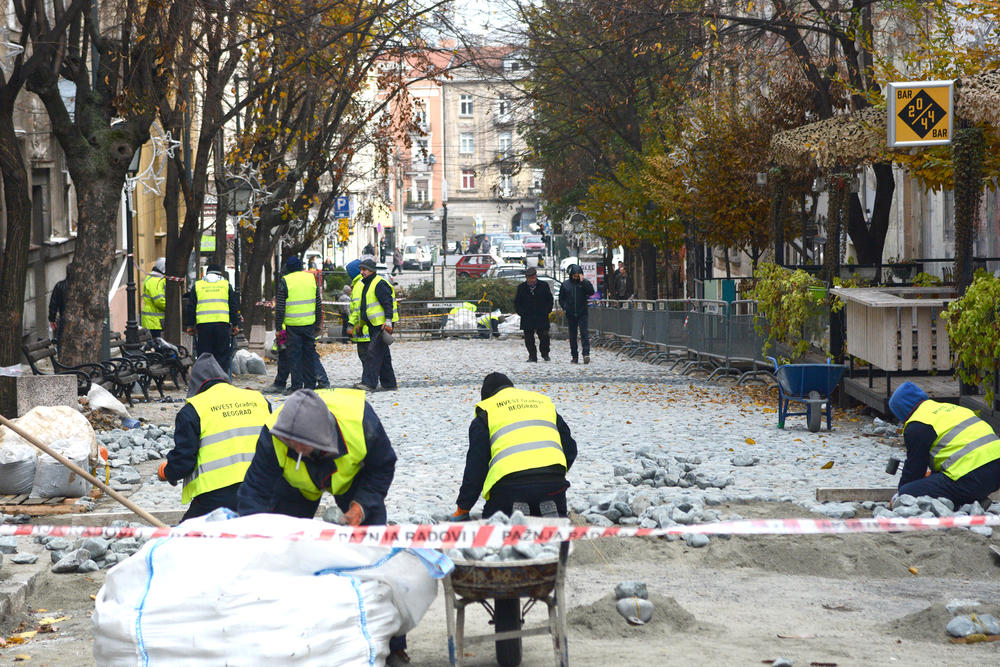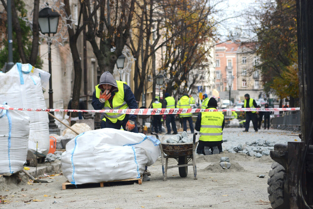 Oni su vredno radili, u delu ograđenom trakama, a građanima je zabranjeno da prelaze preko nedavno postavljene kaldrme.