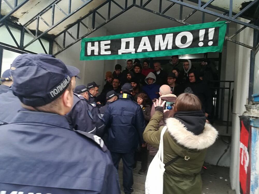 9: 30 - Građani su napravili živi zid i ne daju policiji da uđe u zgradu.