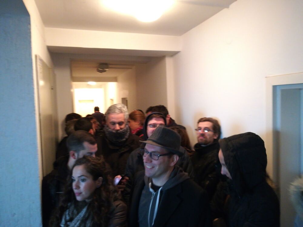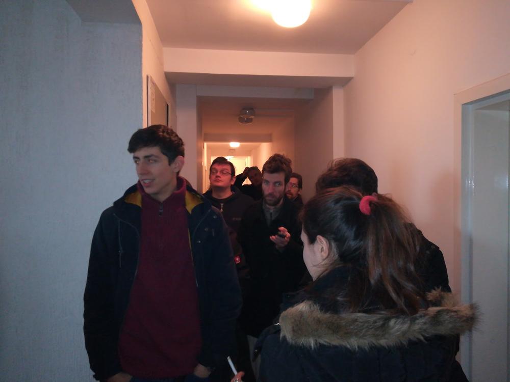 11:40 - Policija je upala u zgradu i popela se na sprat, a ljudi su blokirali prilaz Gordaninom stanu. Na desetine građana nalazi se u hodniku, dok su pripadnici policije, za sada, stacionirani na stepeništu.