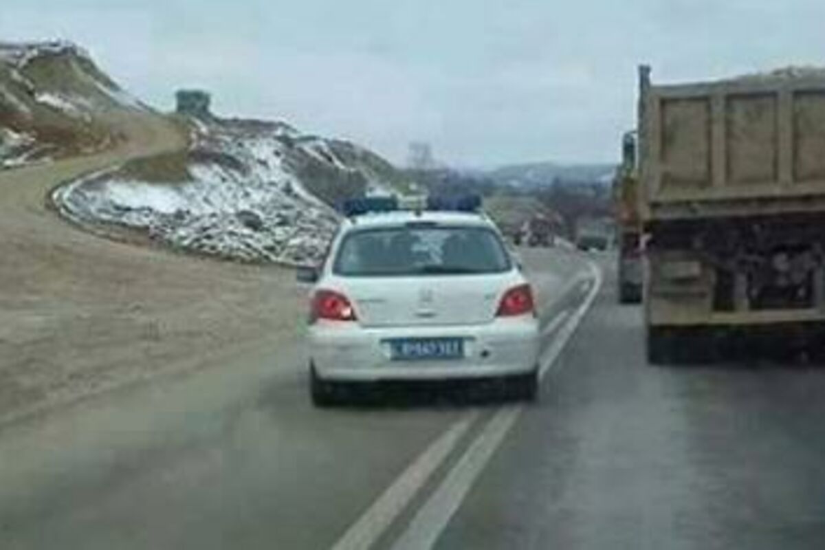 POLICIJSKI AUTOMOBIL PRETIČE PREKO DUPLE PUNE LINIJE! Tviter gori zbog ove fotografije (FOTO)