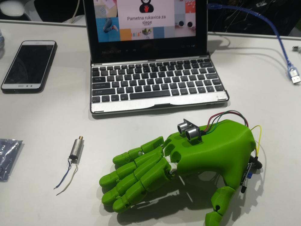 Kako nam je objasnio, pametna rukavica pomoću vibracija daje informaciju slepoj osobi o udaljenosti od nekog predmeta. Pošto sadrži kamericu, rukavica slepoj osobi pruža i podatke o fizionomiji i emocijama osobe s kojom razgovara.