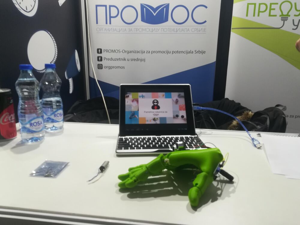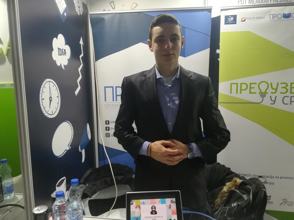 Najveća gužva vladala je na štandu na kome je Nikola Krstić, maturant Elektrotehničke škole "Nikola Tesla“, predstavio prototip pametne rukavice za slepe i slabovide.