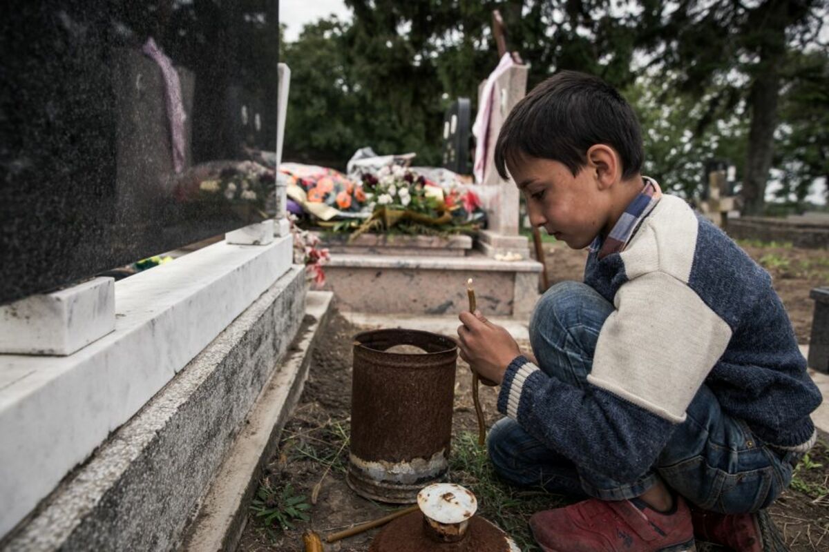 Jedan muslimanski dečak kojeg je slikala Ioana Moldovan, zapalio je sveću na grobu. Njegov otac kaže da je to zato što oni poštuju sve religije.