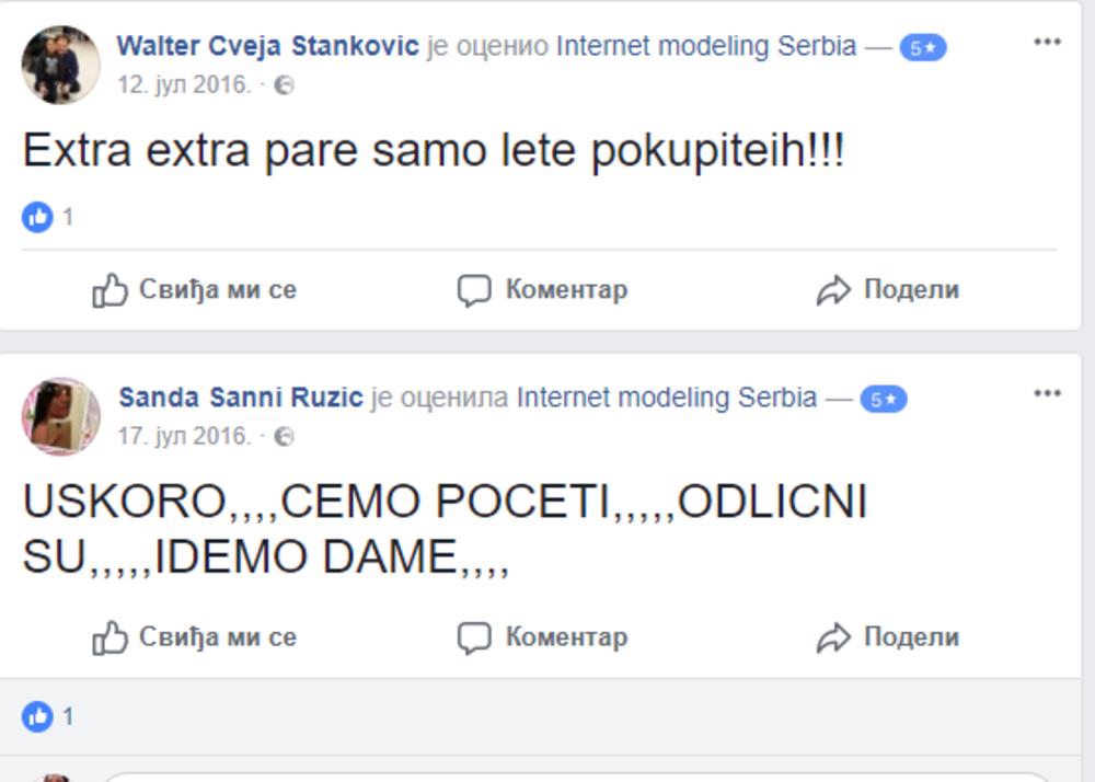 Videla je i dosta poruka na zidu te stranice od ljudi koji hvale tu agenciju i tvrde da "pare samo lete, pokupite ih!". Iako pomalo sumnjičava htela je da okuša sreću.