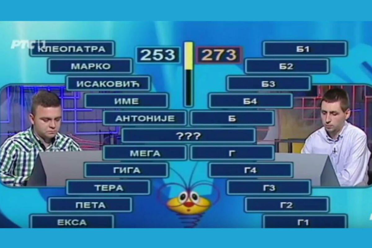 Između dva takmičara u kvizu "Slagalica" odlučujuća igra bila je poslednja asocijacija.