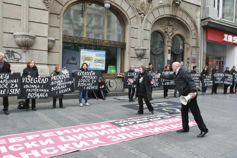 U centru Beograda održan je skup Žena u crnom koje su na taj način obeležile 26 godina od početka sukoba u Bosni i Hercegovini.