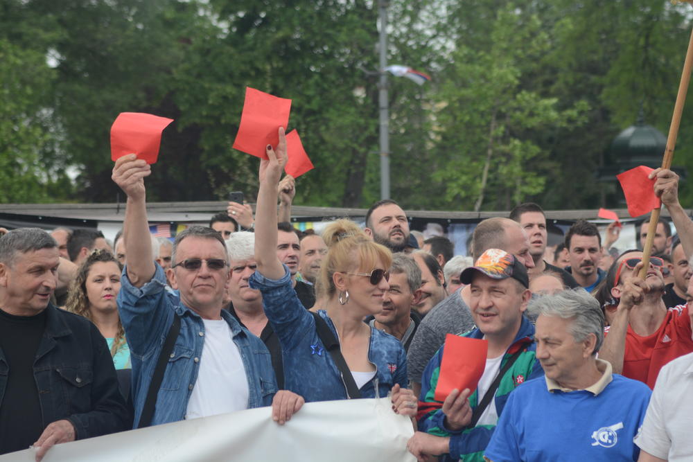 Oni su simbolično pokazali crvene kartone državi, a policija je obezbedila ulaze u dom Narodne skupštine.