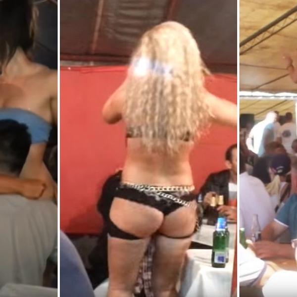 Naime, na snimku se vidi šator ispod kojeg se čuje narodna muzika, a goste za stolovima zabavljaju oskudno obučene igračice.