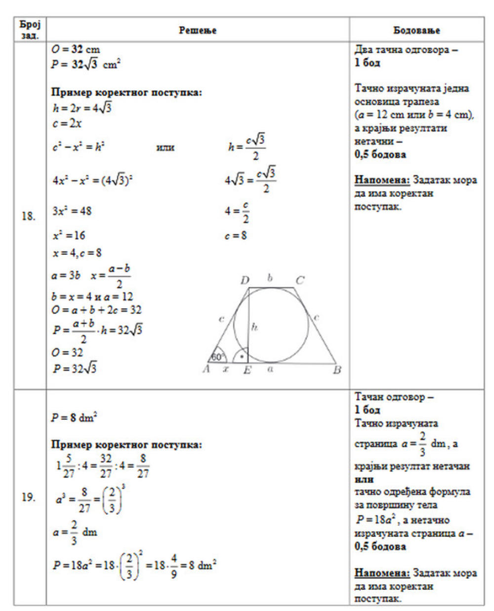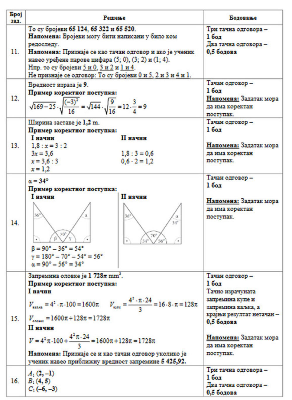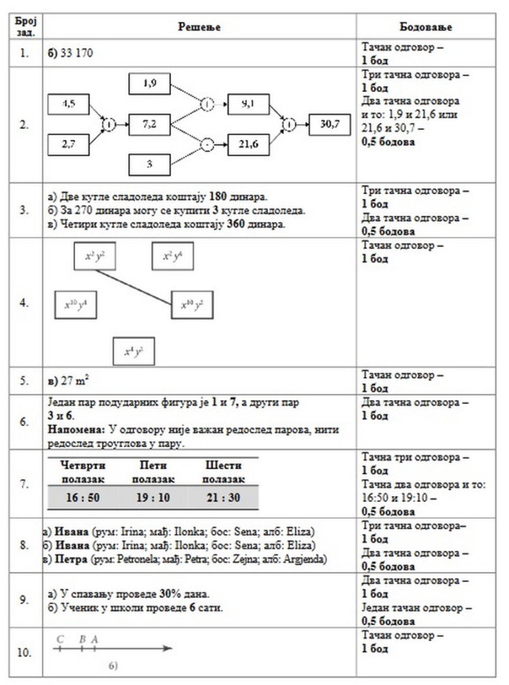 Ovo su rešenja testa iz matematike koji su danas polagali učenici osmog razreda.
