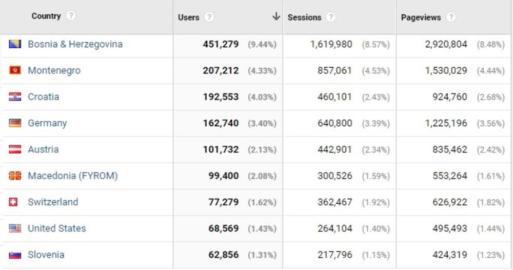 O kvalitetu našeg sadržaja, posebno autorskog, svedoči i to da se veliki broj naših čitalaca nalazi u Crnoj Gori. Gotovo 200.000 čitalaca iz ove zemlje redovno čita naš portal.