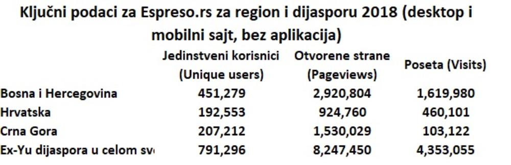Milioni su svakog dana uz nas, NAJBRŽE SMO RASTUĆI MEDIJ U REGIONU: Espreso.co.rs čita pola miliona ljudi u Bosni, 200.000 ljudi u Crnoj Gori i Hrvatskoj, 162.000 u Nemačkoj...