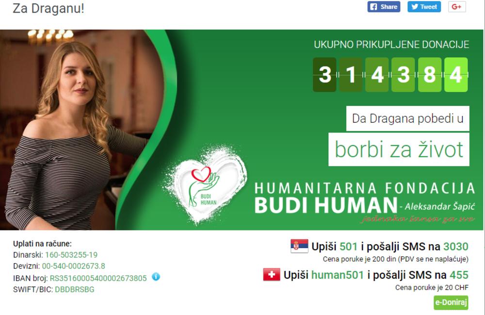 Humanitarna fondacija Budi human – Aleksandar Šapić prikuplja novčana sredstva za Draganu Stanimirov (1998).