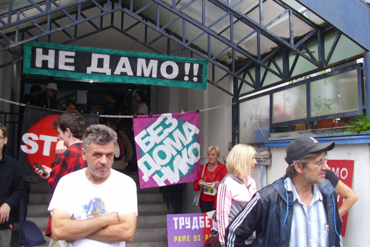 Ispred zgrade su aktivisti i aktivistkinje Združene akcije Krov nad glavom, kao i građani i građanke, rešeni da spreče ovo prinudno iseljenje.