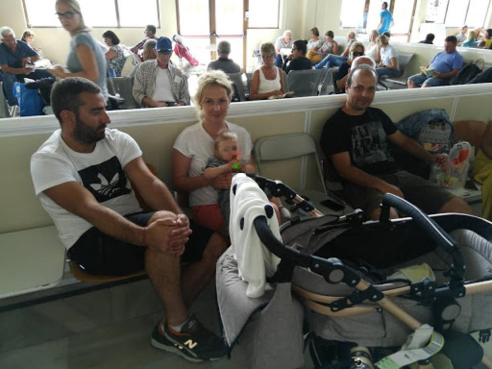 SRBI ZAROBLJENI NA AERODROMU NA SKIJATOSU, U OČAJU SEDE I ČEKAJU: Trebalo je da polete jutros u 8.35, ali im je let odložen za danas u 17!(FOTO)