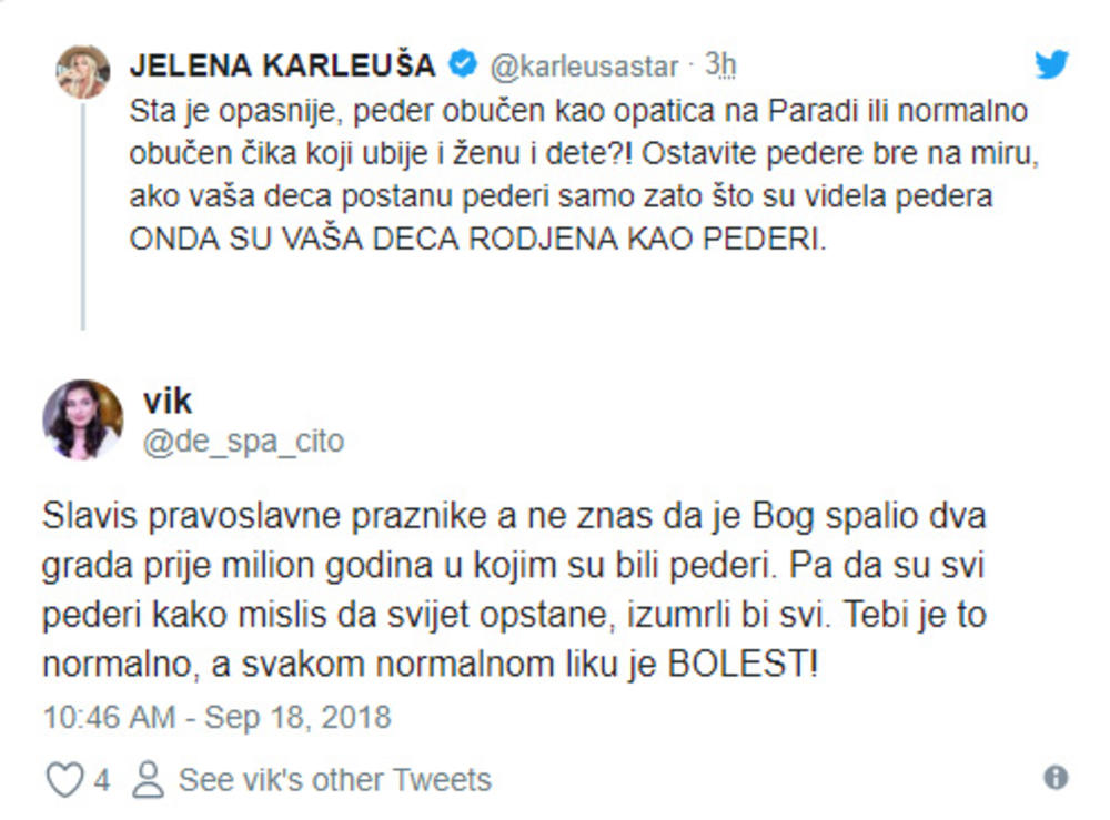 Jedna tviterašica napisala je da je zajednica koju Karleuša brani bolesna.