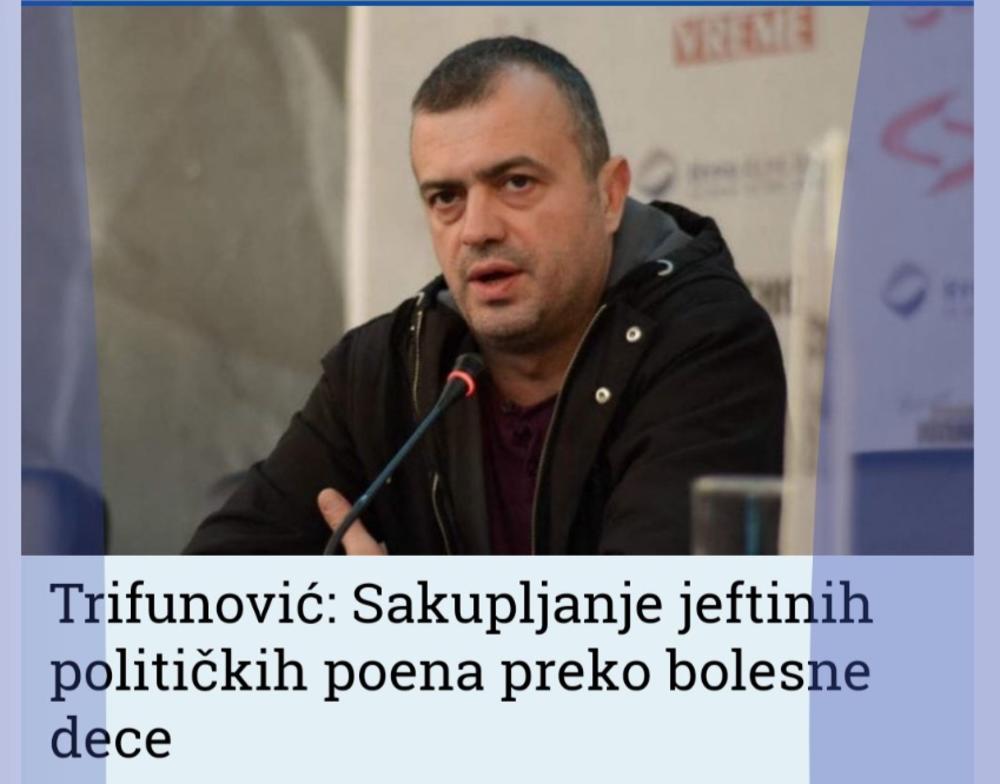 Sergej Trifunović je bio jedan od prvih koji je jasno i glasno osudio taj čin, rekavši da je to skupljanje jeftinih političkih poena preko bolesne dece.