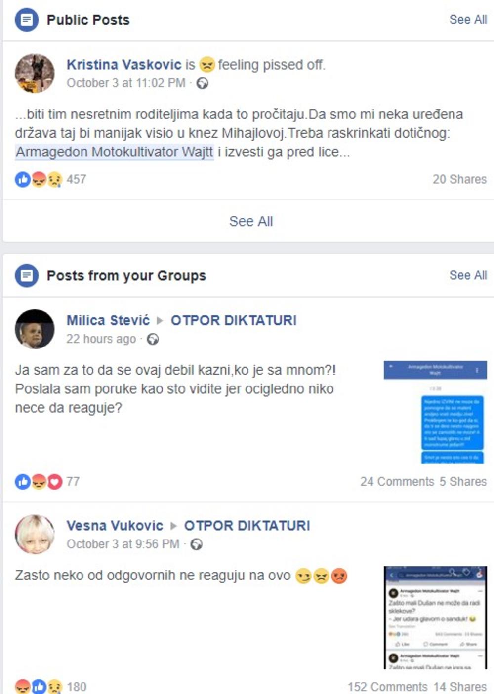 Građani na društvenim mrežama traže da se osoba koja se krije iza ovog profila kazni i da nadležni reaguju. Da li će se u Srbiji ikadaznati prioriteti?