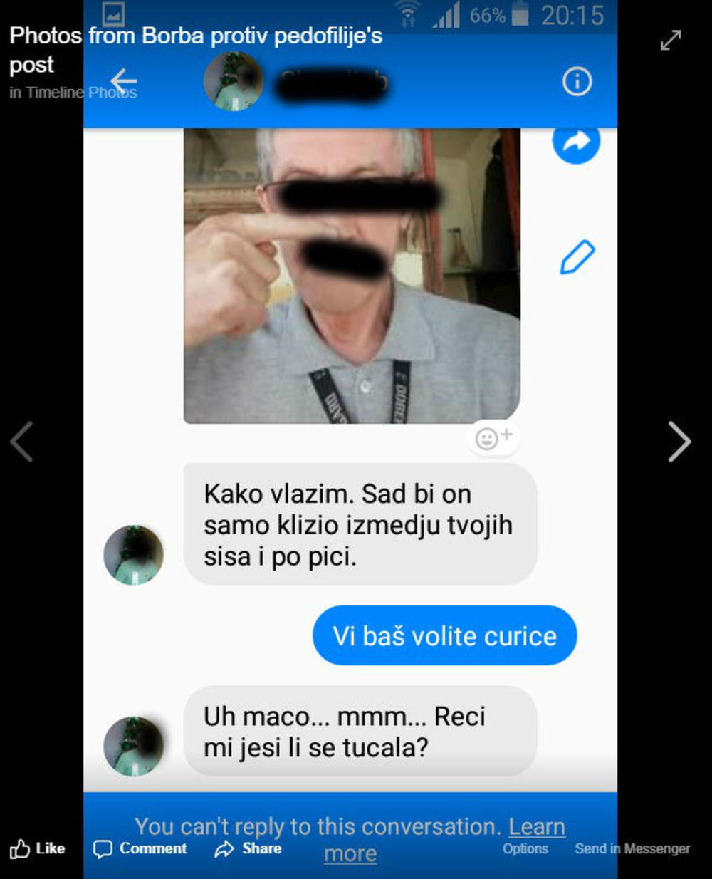 Danas je javnost ponovo zgrozila prepiska, sudeći po fotografijam, čoveka koji ima više od 60 godina, a njegova meta bila je devojčica od 13 godina.