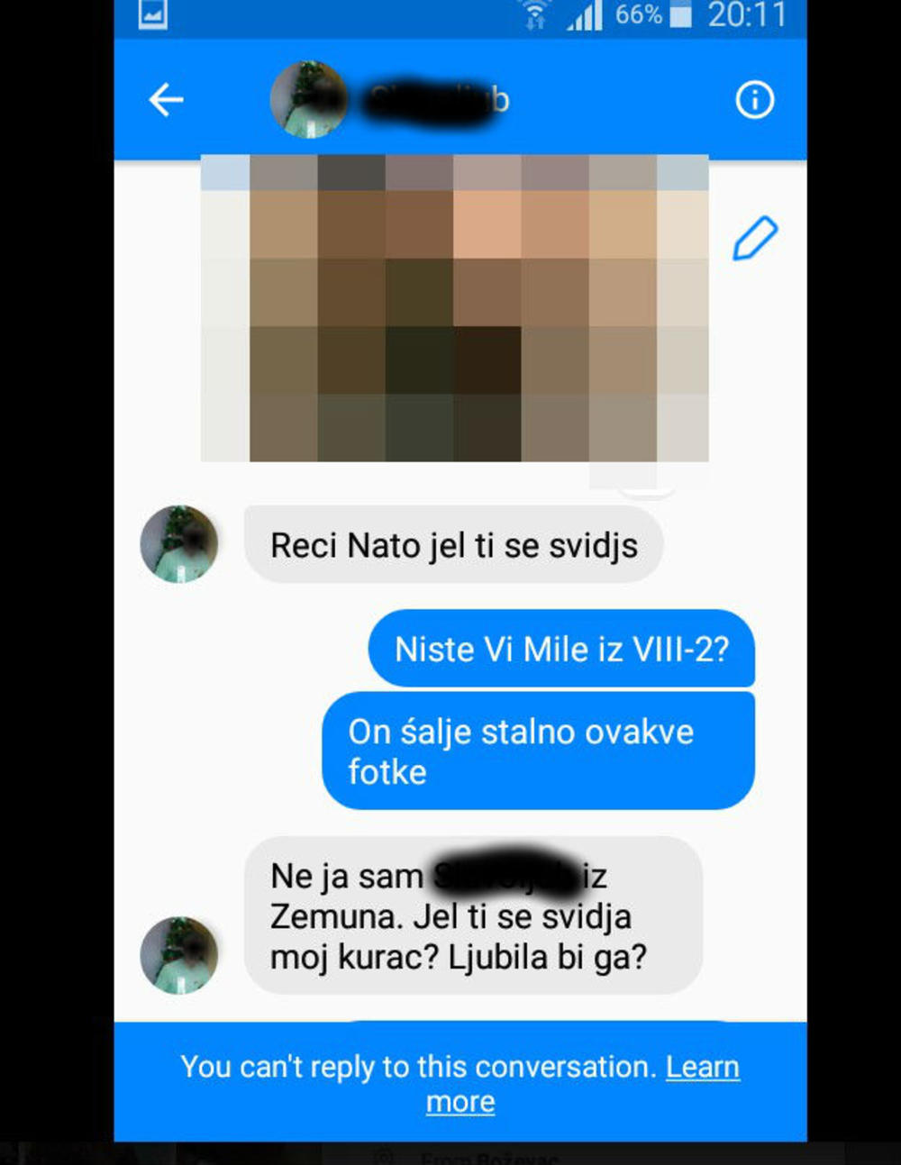 Manijak je poslao i nekoliko fotografija na kojima se vidi njegov polni organ i nastavio s bolensim porukama. Predlagao je devojčici da ode do kupatila, da se zaključa i fotografiše sve svoje intimne delove.