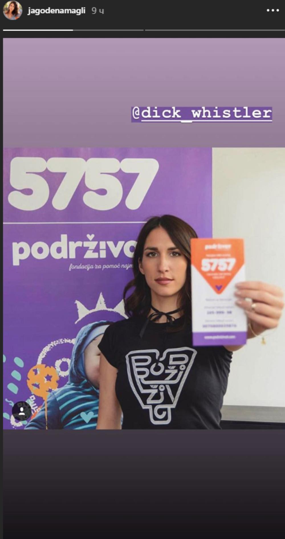 Jelisaveta Orašanin se oglasila na svom Instagram profilu i objavila fotografiju na kojoj je broj 5757 "Podrži život" i na taj način podržala Sergeja kolegu i prijatelja.