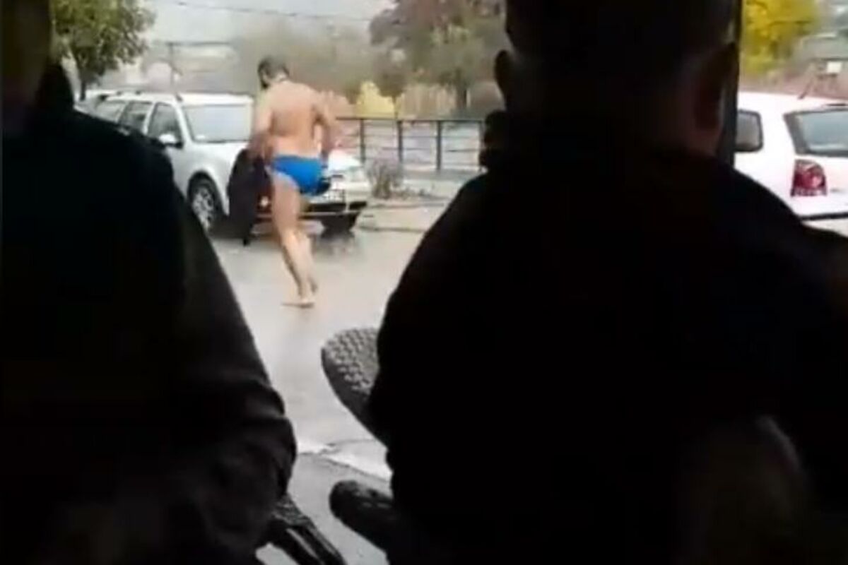Užice je danas pogodio jak pljusak i mnoge je naterao da obuku jakne i ponesu kišobrane sa sobom, ali izgleda da ovom čoveku oktobarsko vreme i kiša uopšte nisu smetali da se prošeta skoro nag po ulicama grada na Đetinji.