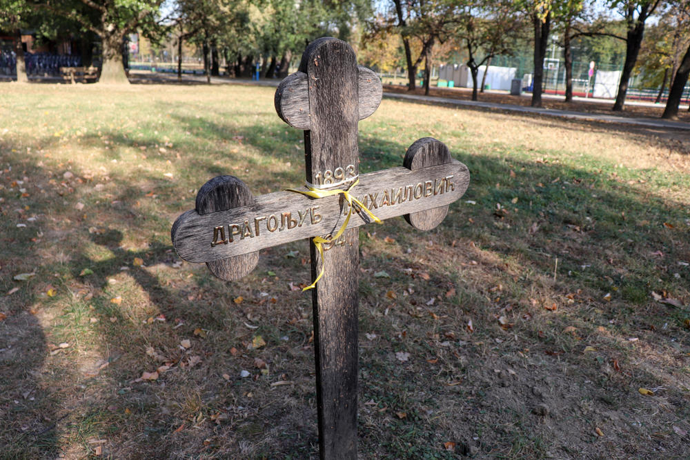 Na Adi Ciganliji, blizu samog ulaza, odmah pored pešačke i biciklističke staze, nedaleko od mesta gde se iznajmljuju roleri i dvotočkaši, ugledali smo krst koji su poštovaoci Čiča Draže i postavili iznad svojevrsnog groba.