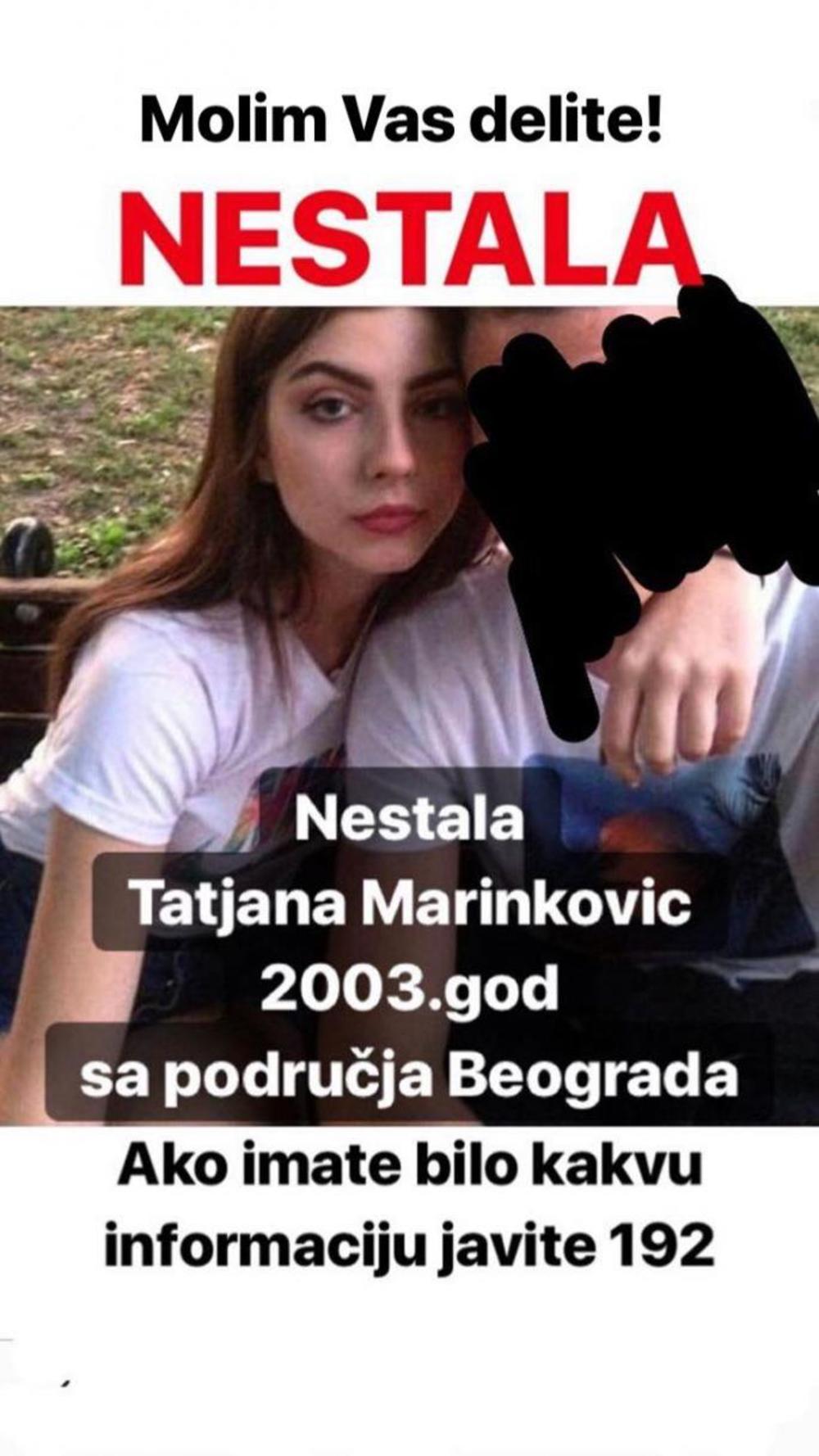 Nestala devojčica Tatjana Marinković (15) sa područja Beograda. Porodica i prijatelji mole za pomoć.