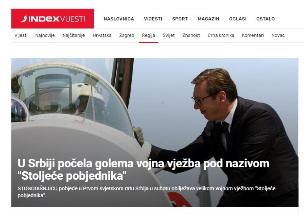Mediji u regionu izvestii su danas da Srbija stogodišnjicu pobede u Prvom svetskom ratu obeležava velikom vojnom vežbom "Vek pobednika", koja se odvija na 10 lokacija širom zemlje i u kojoj učestvuje 8.000 pripadnika Vojske Srbije sa 645 borbenih sistema.