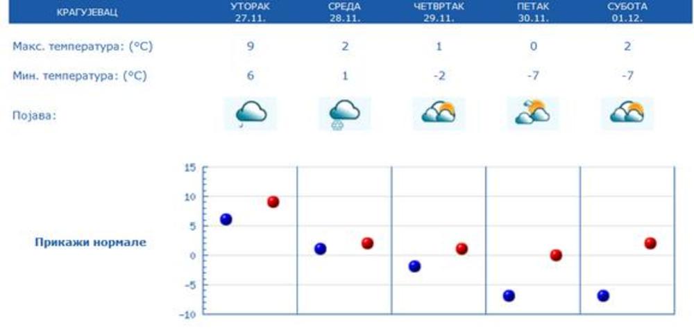 Temperatura će do subote u većini gradova Srbije biti oko minus 5 i 6, a u Kragujevcu se očekuje i za stepen hladnije.