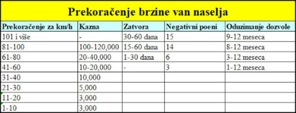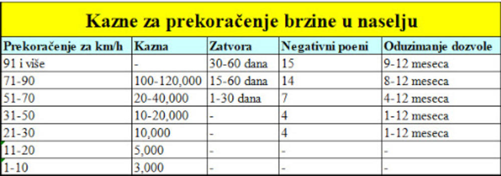 Ovo su kazne prekoračenja u kilometrima u naseljenim mestima, ali i kasne koje za to slede.