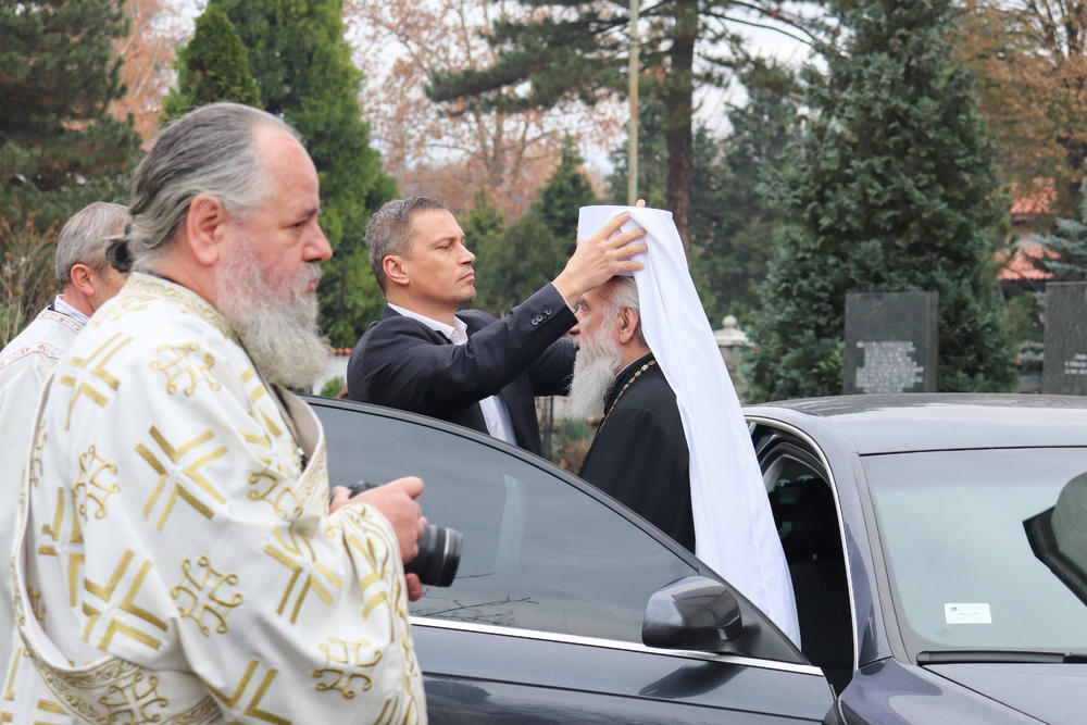 Patrijarha su u dvorištu manastira dočekali vernici, zajedno sa monasima i sveštenim licima.